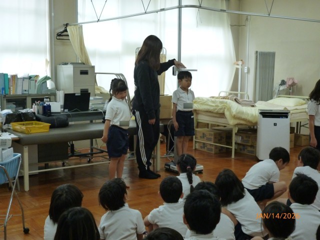 3学期の二測定を各学年、順に行っています。1年生は、プライベートゾーンのお話を聞いてから、体重と身長を測りました。どちらもしっかり成長していましたね。寒い中ですが、しっかり運動して、給食をもりもり食べて、どんどんたくましくなっていきましょう!