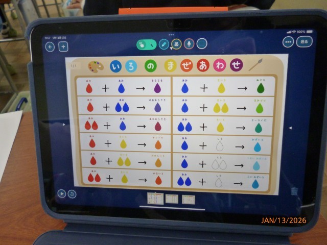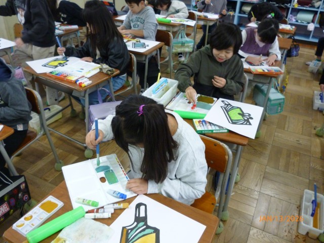 絵の具の色づくりは、実はとても難しいものです。どのくらいの量の絵の具を入れるか。また、水の量は・・・。ちょっとした量の差で、できあがる色は違ってきます。自分のイメージしていた色があるため、納得できるまで結構、時間がかかるものです。(できるだけ三色以上は混ぜない方がいいというルールを聞いたことのある人もいるのでは?)