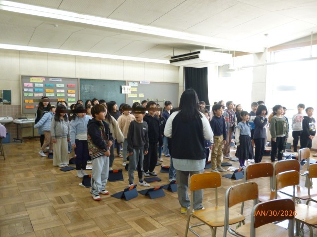 2月の最終日の授業参観で、2年生はこの1年間に学んだことを発表します。少しずつ練習に取り組んでいます。