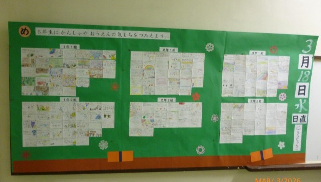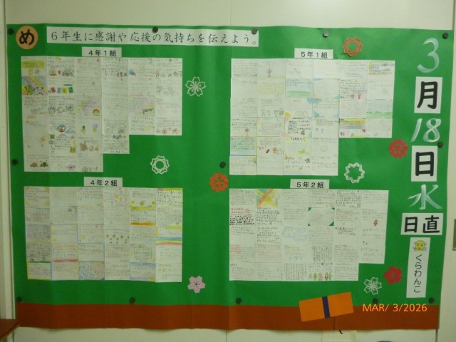 3月4日(水)6年生に感謝や応援の気持ちを伝えよう。