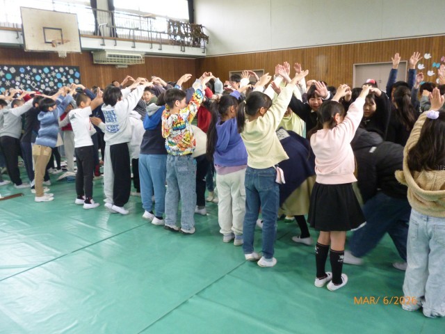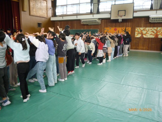 6年生が体育館から退場するとき、1〜4年生が手でつくったアーチの下を通っていくのですが・・・。低学年だと、アーチが低くなってしまうため、6年生はみんなしゃがみ気味で歩かないといけないのです。