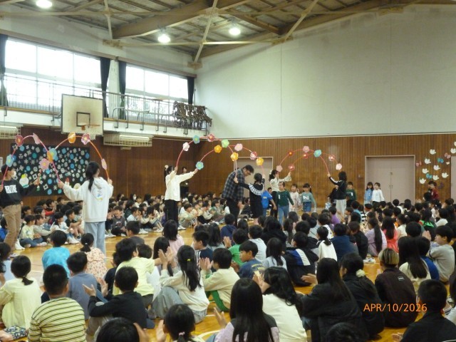 香陽小学校は全員で388人です。みんなで、明るく、元気いっぱいに過ごしていきたい!とあらためて感じた対面式でした。