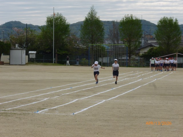 4月13日(月)6年生 ダッシュ! 50m走