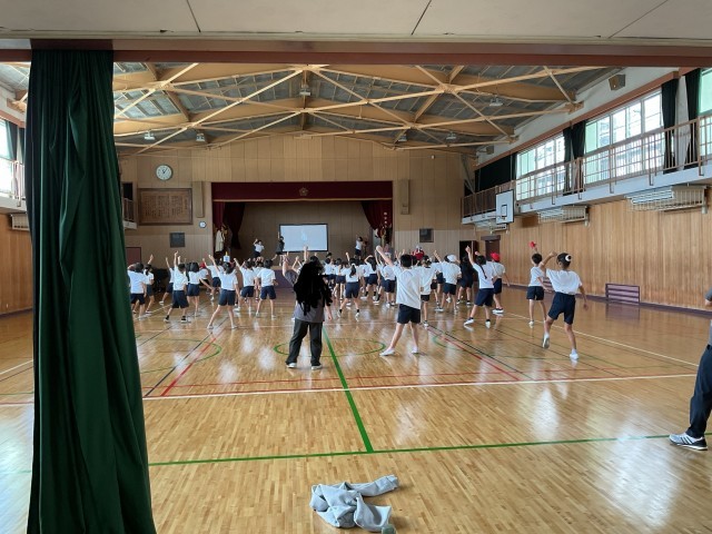 4年生では、体育館で運動会・団演の練習です。動きが早く、かつ複雑です。でも子どもたちはしっかりついて行っています。当日が楽しみです。