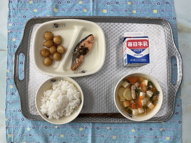 今日は、十五夜ですので、月見団子と月にうさぎの絵が描かれたかまぼこを入れた月見汁が出ました。