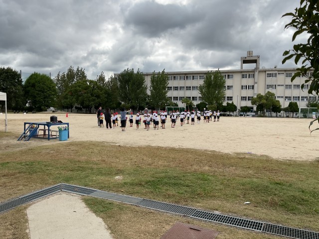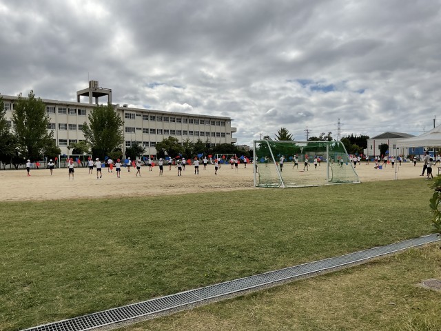 1年生の練習風景です。このあと「ゴールに向かってよーいどん」の練習も行われていました。