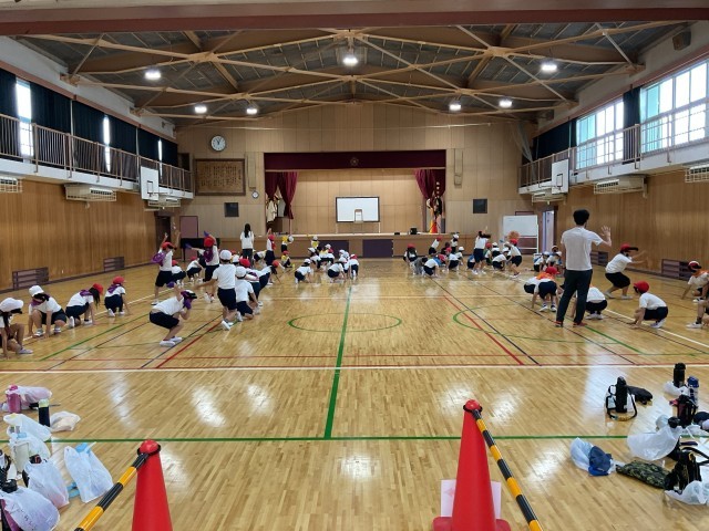 2年生の運動会の練習の様子です。曲に合わせての動きができてきています。