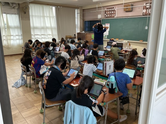 3年生の授業の様子です。子どもたちはタブレットを使いながら学習に取り組んでいます。