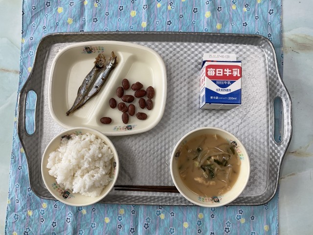 今日の献立・・・だんご汁、ししゃも、金時まめ、ご飯、牛乳です。