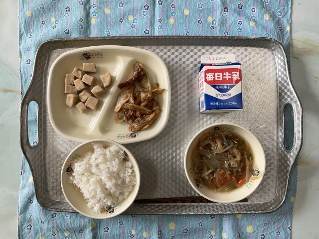 今日の献立・・・タイピーエン、揚げごぼうのごまだれ、高野豆腐のふくめに、ご飯、牛乳です。