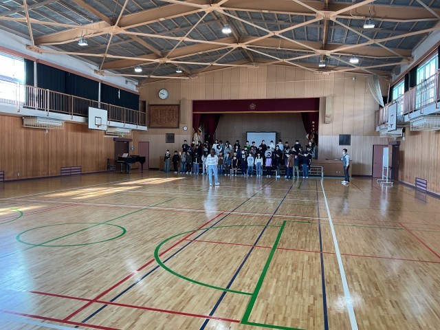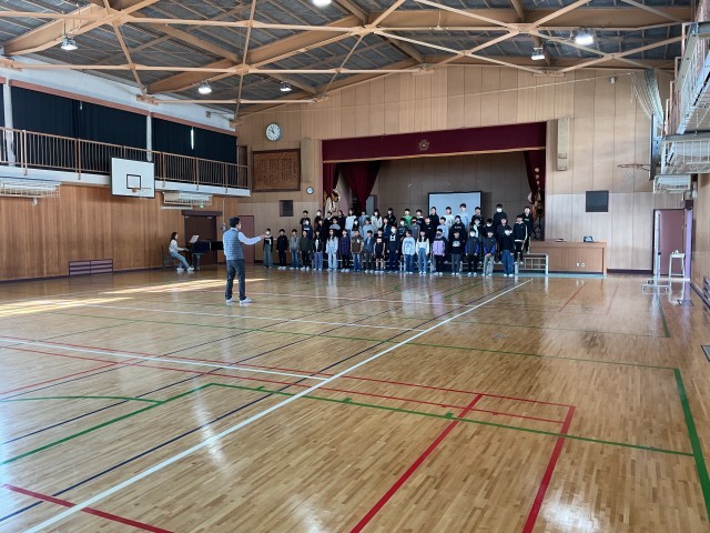 今日の2限目に6年生たちは、合同音楽祭に向けて、学年練習を体育館で行いました。最初は少し遠慮気味の歌声でしたが、中盤以降、美しい歌声で練習していました。当日が楽しみです。
