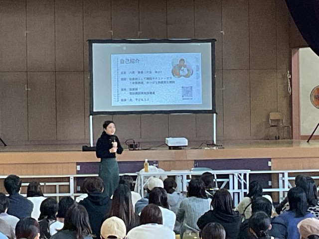 本日は、土曜授業を実施しました。授業参観前の2限目には、保護者対象、PTAとの共催による「性教育講演会」をみつばち助産院の八尾侑香先生を招聘し講演をしていただきました。保護者の方々からは「とても良いお話を聞けて良かったです」「今日、家で子どもとお話をしてみます」等々、感想をいただきました。八尾先生からも「多くの保護者の方にお話できて大変嬉しかったです」「また、講演終了後も個々に質問していただきありがたかったです」など、感想・思いをお話していただきました。これを機に次年度も継続していければと思っています。