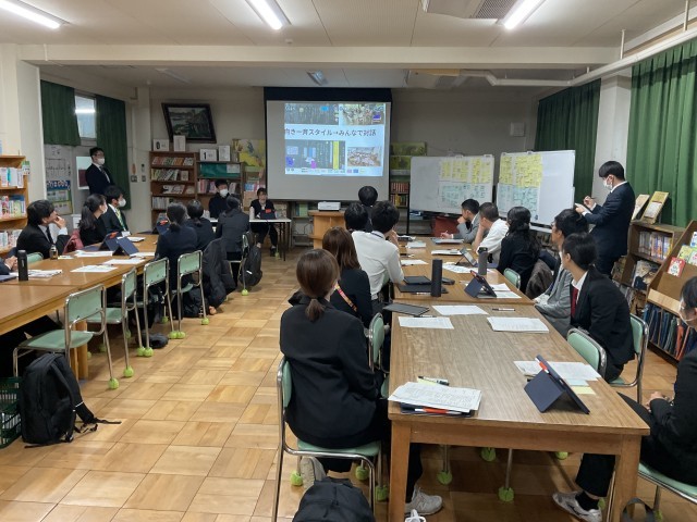 本日の午後から、教育委員会の先生方3名と市内の2年目の先生方が本校に集合し、本校の2年目教諭が「2年目代表者による研究授業」を行いました。その後図書室において研究協議会を行い、グループ協議・全体交流等、研修を深めました。