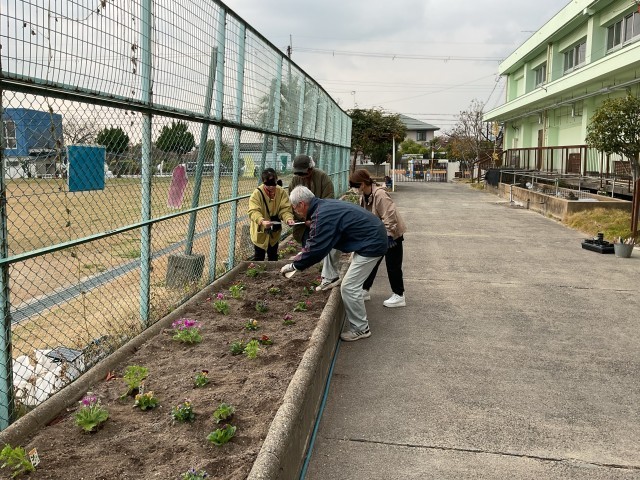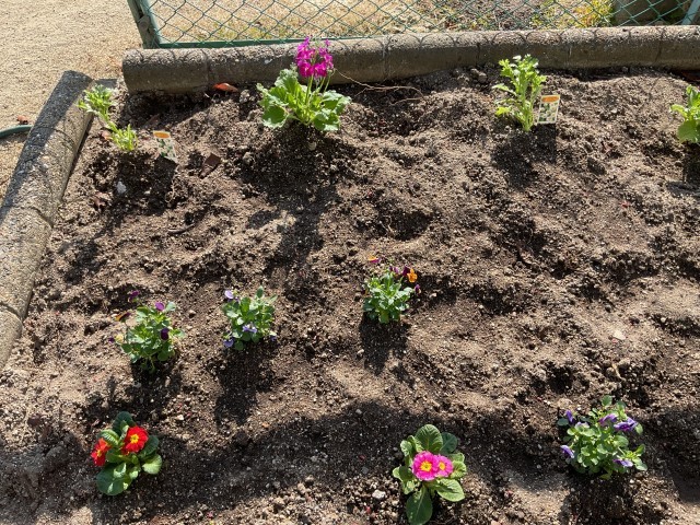 昨日、PTAの方が来られ、最初に校務員さんと一緒に花壇に花を植えていただきました。お忙しい中ありがとうございました。大事に育ててまいります。
