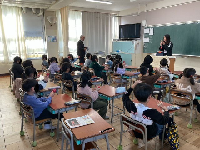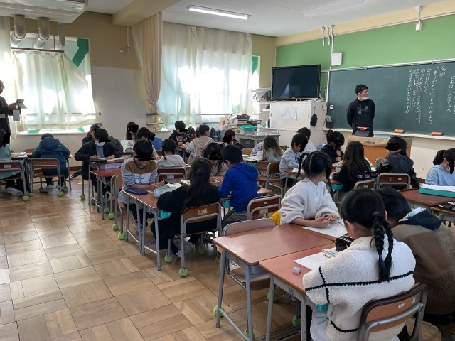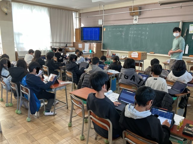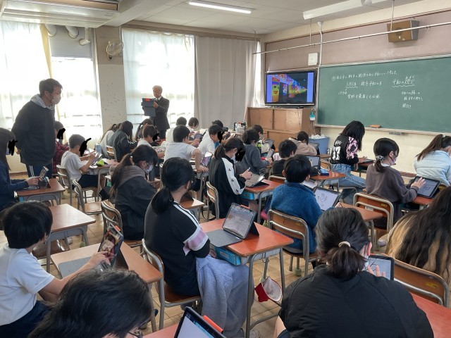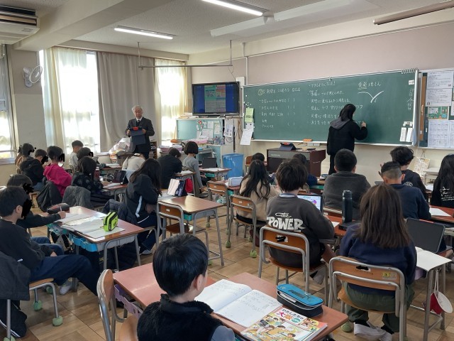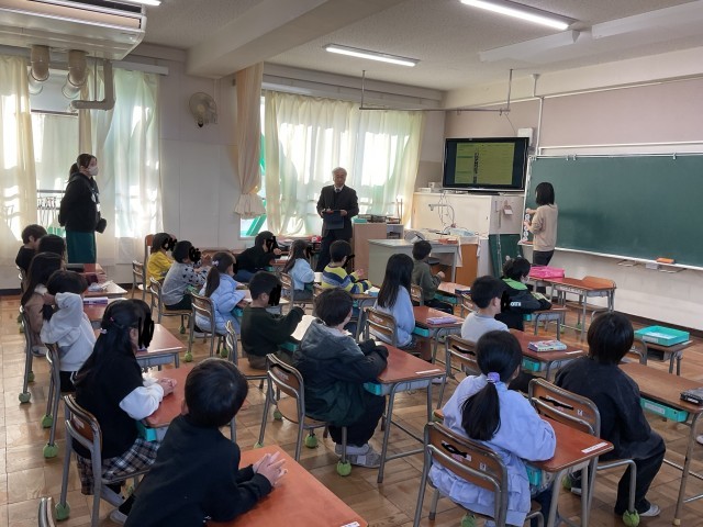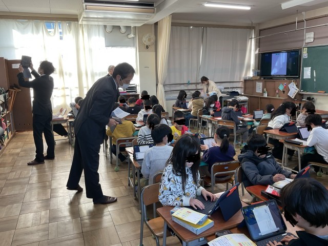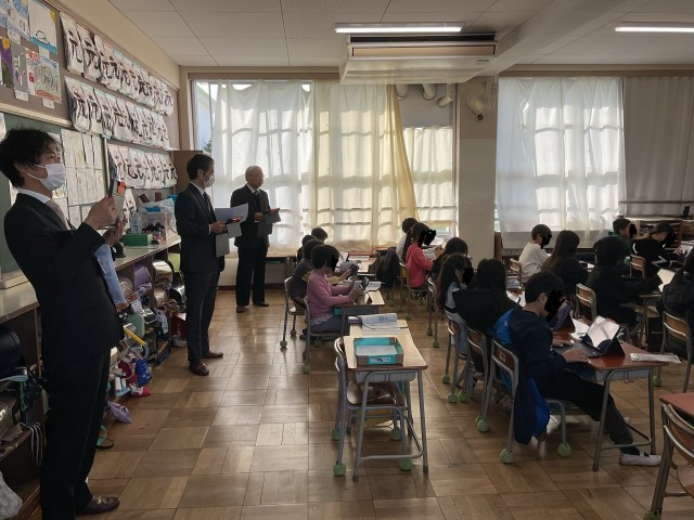 今日の午前中に教育委員会から3名の先生が学校訪問に来られ、子どもたちの授業の様子を見られました。先生方からは、