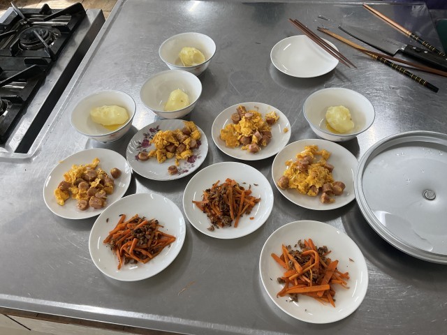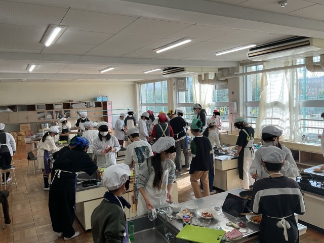 6年生の調理実習の様子です。どのグループも協力しながら、テキパキと調理・洗い物などを行なっています。どのグループ美味しそうに出来上がりました。