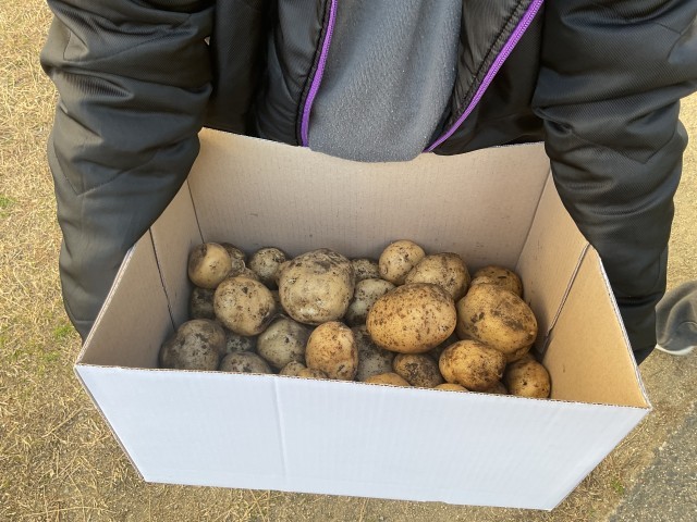今日の6限目に4年生たちは、自分たちが育てた畑でジャガイモ掘りを行いました。子どもたちは歓声をあげながら楽しそうにジャガイモを掘っていました。さて、掘ったジャガイモは全部で何キロぐらいになったかな?