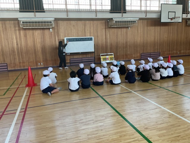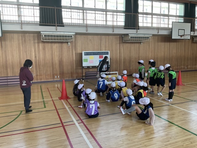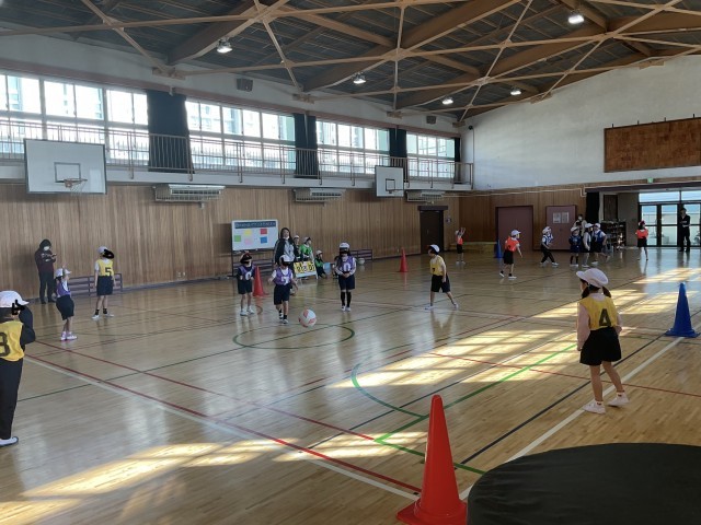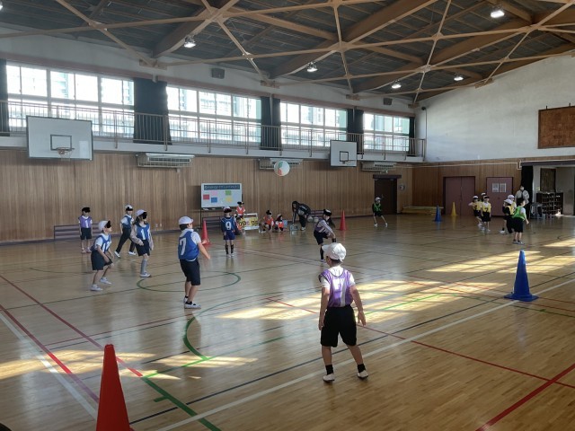 1年生の体育授業の様子です。ドッチボール授業で子どもたちは、先生の説明通りに、テキパキと動く様子が素晴らしく、班ごとにボールゲームを楽しんでいます。