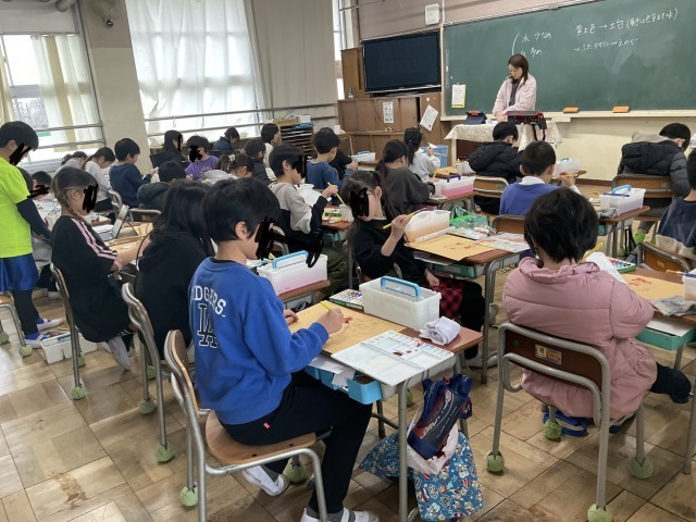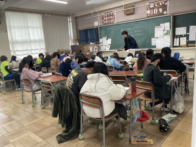 5時間目の授業の様子です。1年生は、それぞれで学習発表会をしています。3年生は、何の絵を描いているのかな?