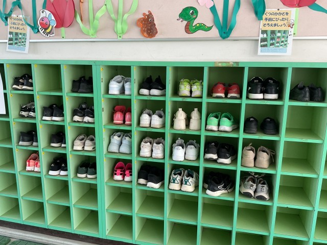 また、昨日に続いて靴箱の様子も・・・素晴らしい!。綺麗に入れていました。これからもそんな姿・習慣を大切にしていきましょう!