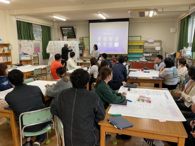 ワークショップ形式で行われた研修では、本校の子どもたちの良さを再確認する場面もあり、主体的に取り組む熱気が感じられました。