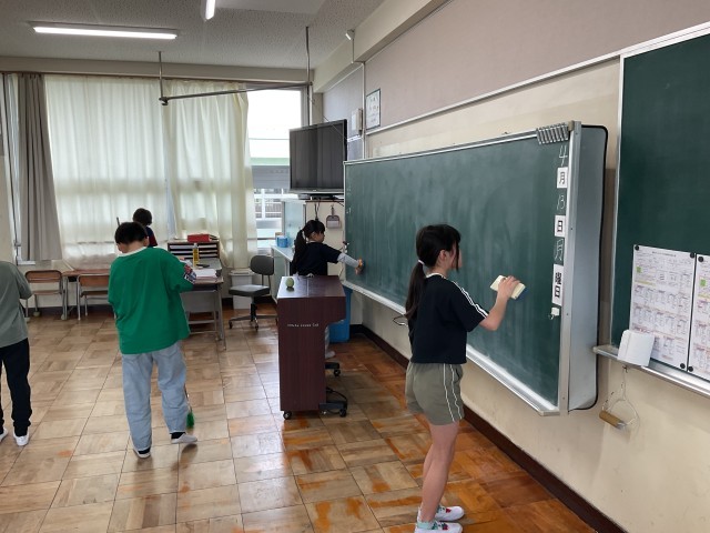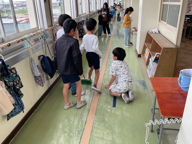 今日から掃除が始まりました。今年度から掃除時間を5分短縮。少し心配をしましたが・・・初めてで少しどの係がどんな仕事をするのか戸惑っていた人もいましたが、一生懸命に掃除をしている姿が印象的でした。靴箱に入っている靴も変わらず、綺麗に入っています。みんなが使っている場所をみんなで大切にしていきましょうね。