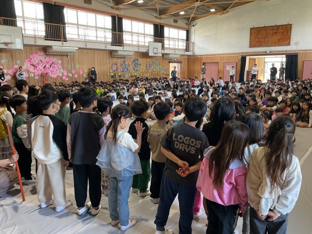 今日は、今年度になり初めて6学年が同じ体育館に集まり、対面式を行いました。お兄さんお姉さんに迎えられ、1年生が入場した後は、校歌を紹介してくれたり、歓迎の言葉を伝えてくれたりしました。そのあとには、1年生からもお兄さんお姉さんによろしくお願いします!と元気にご挨拶ができました。