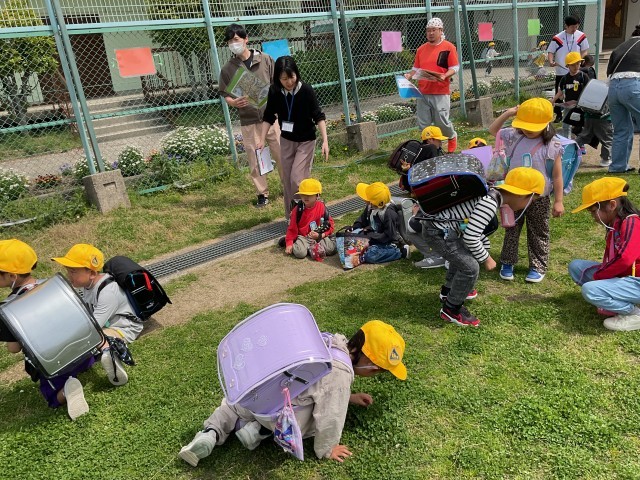 待っている時間も、1年生はさまざまなことに興味津々です。今日は、四つ葉のクローバーを一生懸命探したり、草を使ってごっこ遊びをしたりする姿が見られました。こうした一つ一つの「気になる」「やってみたい」という気持ちが、これからの学びへとつながっていきます。ぜひ、これからもたくさんの興味を大切にしてほしいと思います。