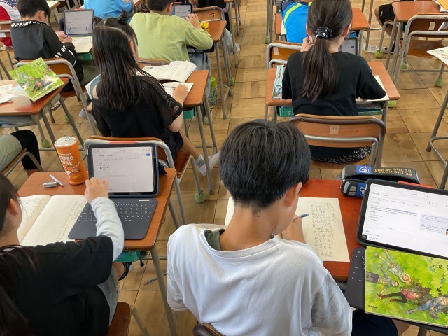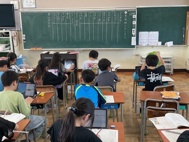 4年生の授業です。国語では意味調べ、社会では私たちの住む大阪府。