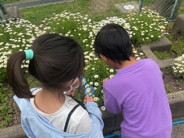 3年生の理科の授業では、虫眼鏡を片手に、校庭に潜む「小さな命」の観察に出かけました。