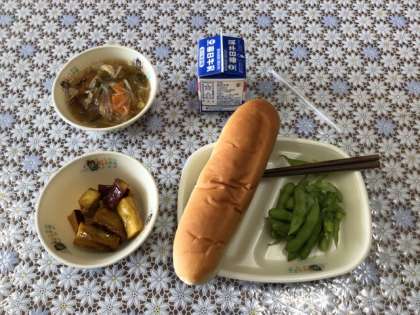 10月8日(金) 今日の献立は、コッペパン、牛乳、タイピーエン、枝豆、大学芋でした。