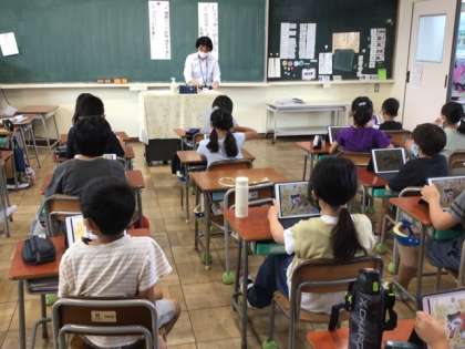 今日は3年生で教育実習生の研究授業が行われました。教科は国語科で、今日のめあては「自分のつくった物語をしょうかいしよう」でした。子どもたちはタブレットを活用したり、班での活動を行ったりして、頑張って取り組んでいました。
