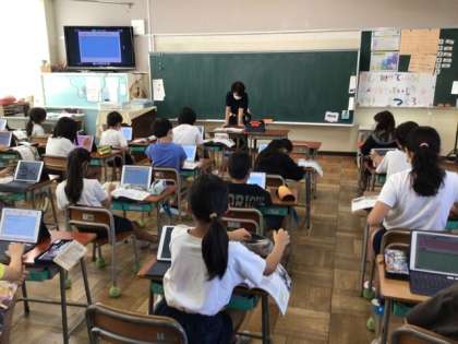 4年生の社会科です。今日は「自然災害から命とくらしを守る」ということで「地域防災リーダー」に関する学習をしていました。