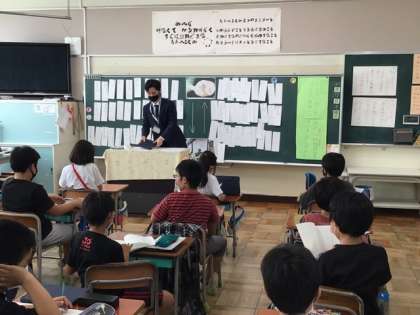 今日は、4年生で研究授業を行いました。枚方市教育委員会や他クラスの先生方も大勢見にこられました。教科は国語科。「ごんぎつね」の学習で、めあては「自分の作った人物相関図の理由を話し合おう」です。子どもたちは、真剣に取り組んでいました。