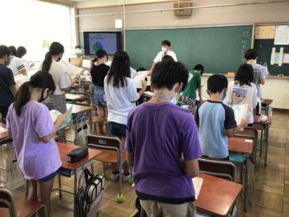 5年生の道徳の授業参観。「心のレシーブ」です。友情について考えます。まず、初めにみんなで黙読をしていました