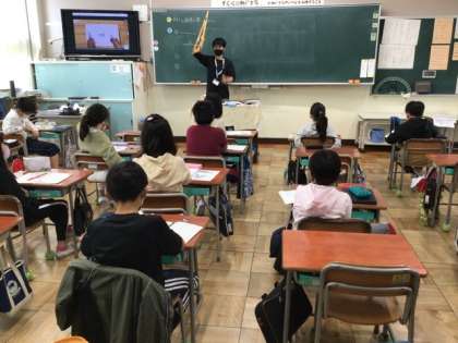 4年生の算数科の授業です。今日のめあては「平行な直線を書いてみよう」です。平行について実際にノートに書いてみながら学習をしています。