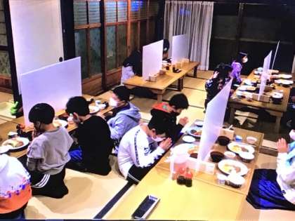 宿泊学習の1日目も夕食の時間になりました。今のところ、子どもたちはみんな元気です。この後の夜のプログラムにつきましては、明日のブログで紹介いたします。