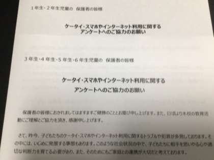 そこでアンケートの回収に関する確認とお願いです。諸事情により、現在2つのアンケートを各ご家庭にお願いすることになってしました。それぞれのアンケートのご提出にあたりましては、お配りいたしました封筒に、それぞれのアンケートを入れた上でのご提出をお願いいたします。