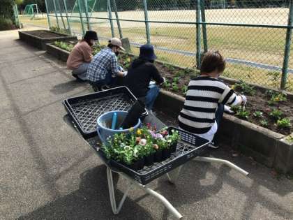PTAの環境整備委員の方が招提小学校に来校されて、体育館横の花壇のお花の植え替えをしてくださいました。ありがとうございました。