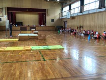 10月19日(火) 2年生の体育科、今日は体育館で跳び箱をしていました。