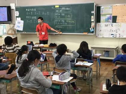 4年生の算数科です。今日のめあては「平行な直線の組の数を調べよう」です。いろいろな四角形について学習していました。