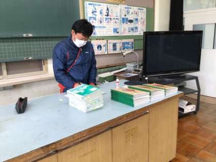 授業がない時間も、先生は子どもたちのノートに目を通して、丸付けをしていました。