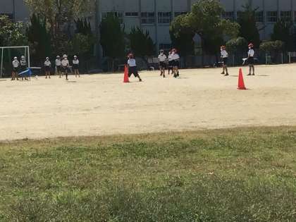 4年生の体育科、少し暑いくらいの運動場でボールを使った活動に取り組んでいました。子どもたちは、みんな楽しそうです。