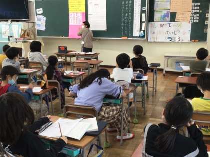 4年生の国語科です。今日のめあては「要約のポイントを見つけるための話し合いをしよう」です。