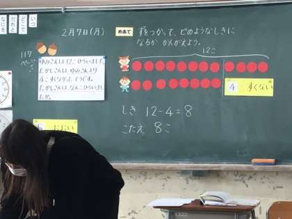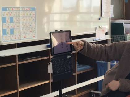 なかよし学級の授業です。算数科の授業では、「たしざんとひきざん」について学習していました。また、別のクラスでは国語科の学習で、タブレットも活用して「片仮名の読みや使い方」について学んでいました。