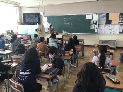 4年生の図画工作科の授業です。タブレットも活用しながら、これから取り組むのは版画です。