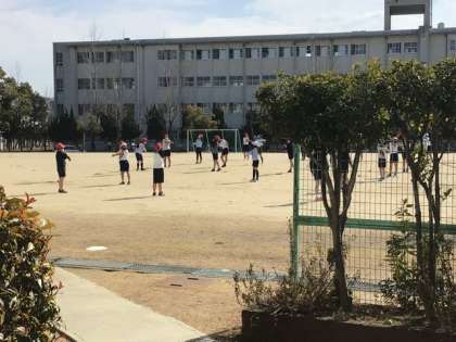 5年生の体育科です。今日は縄跳びに取り組んでいます。太陽も光を増し、少し暖かくなってきました。