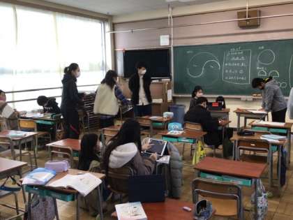 5年生の算数科です。それぞれの子どもたちが、仲間と力を合わせて課題に取り組んでいました。