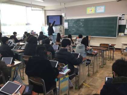 6年生の算数科です。卒業を来月に控えて、6年生はこの一年間に学習した内容について復習に取り組んでいます。そして、今日はオリジナルの教科書作りに取り組みます。子どもたちはグループの仲間たちと協力して考えを進めていきます。