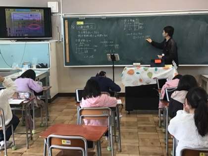 4年生の算数科、少人数授業の様子です。今日のめあては「0.ー倍はどれくらいの大きさか考えよう」「小数の倍」についてです。